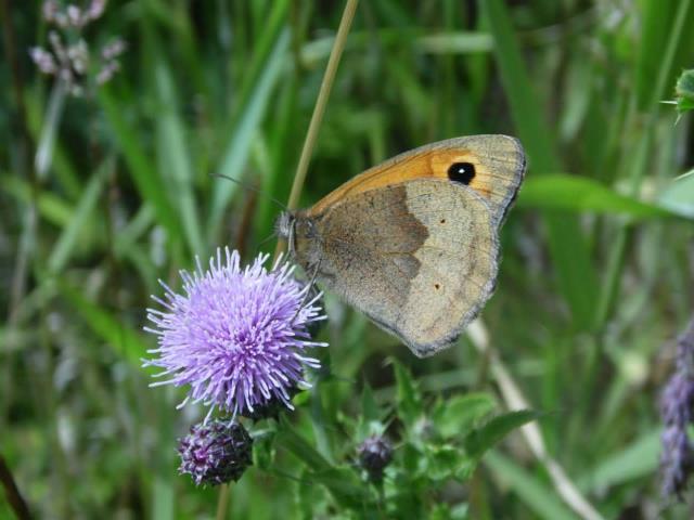 The combination of its relatively large size orange patches on the forewings only one eyespot on the forewing and none at all on the hindwings is unique to the meadow. However from the end of august onwards the females who have aestivated during the hottest days of summer reappear and begin to lay their eggs in grassy areas. The larval foodplants are a wide variety of grasses such as fescues meadow grass couch cock s foot and false broom. Eggs are laid either singly on the larval foodplant or dropped in flight.