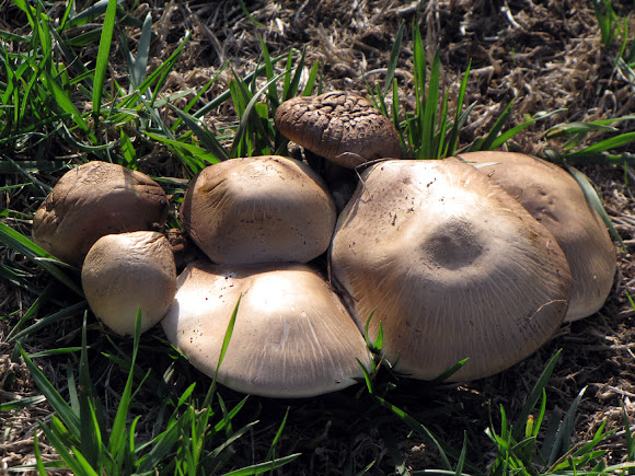 Agaricus campestris can look stocky in structure and a ring skirt around the stem may be present early. When you do find some though you re likely to find a bunch. Some report that the over hang of the cuticle over the cap is a good indicator for the identity of the meadow mushroom. In my experience this isn t a mushroom that you will really hunt for i tend to just see them around randomnly.
